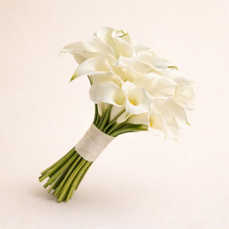 Les callas, avec leurs lignes élancées et leurs courbes délicates, apportent une touche sophistiquée et intemporelle, créant un bouquet harmonieux, chic et lumineux.