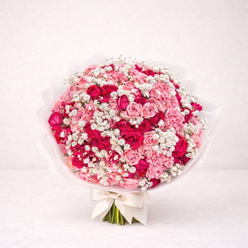 Chaque bouquet est réalisé à la commande par notre fleuriste, avec une attention particulière portée à l’équilibre et à la mise en valeur des fleurs.